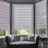 | Custom layered shades give you the view you want without the worry, thanks to horizontal stripes of fabric that alternate between sheer and semi-opaque or opaque fabric | |